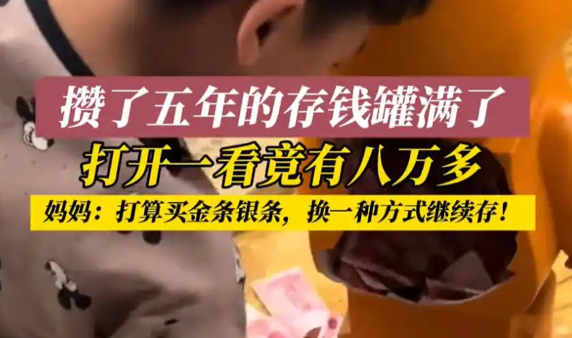 一家四口攒了五年的存钱罐满了,打开存钱罐发现有八万多