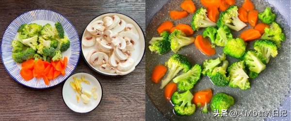 食材:西兰花、口蘑、姜蒜、胡萝卜