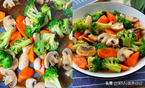 这道口蘑炒西兰花,颜色绿的绿、白的白、红的红,看着就有食欲。吃起来,西兰花脆嫩,口蘑鲜香,胡萝卜清甜,味道那叫一个绝,家人们都赶紧试试吧!