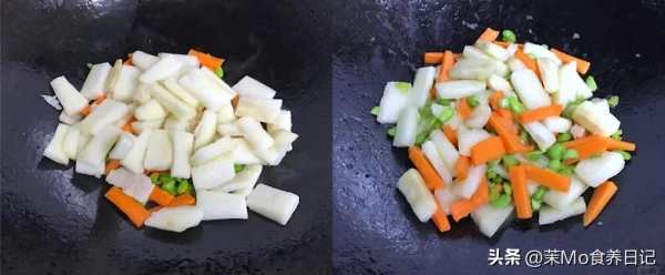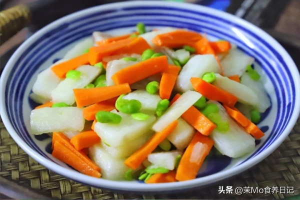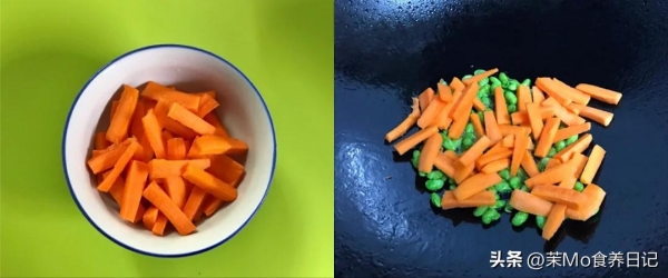 食材:一段山药、一个胡萝卜、150 克毛豆,再准备点盐和少许油就行。