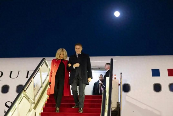 12月3日,一架来自法国的专机顺利落地北京,马克龙与夫人缓缓走下扶梯,中国外长王毅亲自接机。