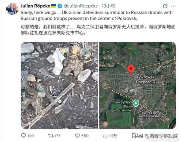 乌媒评论俄军攻入红军城市中心,俄军跪地举白旗向俄无人机投降