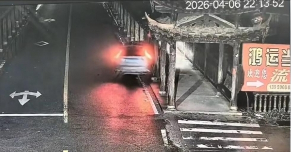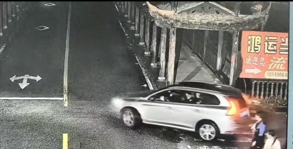 监控画面还原当晚经过:女司机陈某从斑马线右转上桥,刚转弯就忘记回正方向盘了,车子竟然直接往右边冲去。