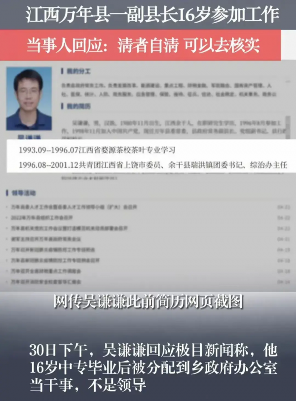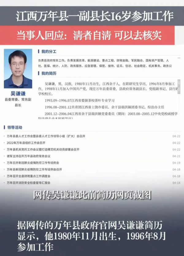 再来说说这位副县长。他1980年出生,1996年中专毕业就参加工作了,当时才16岁。