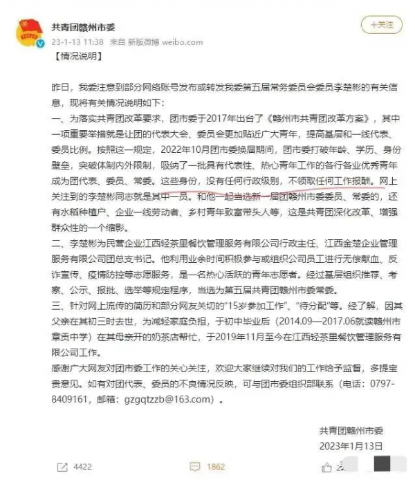 面对质疑,赣州方面给出的解释是:共青团要打破年龄、学历、身份的壁垒,吸纳各行各业的优秀青年。