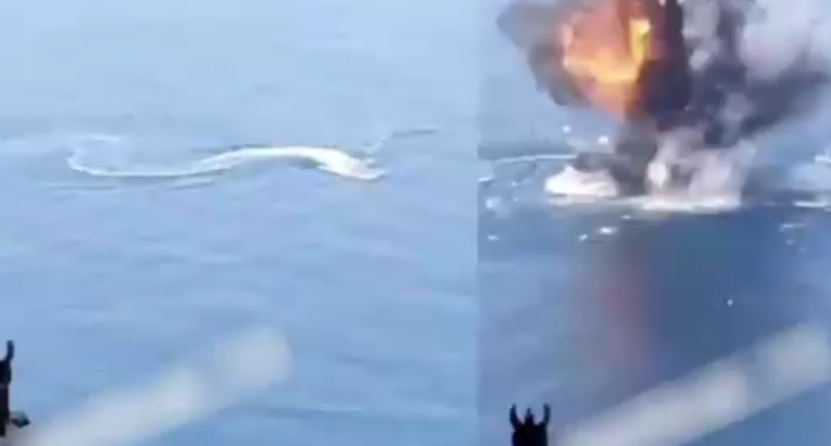 近日,俄军公布了一段视频,视频显示,一架俄罗斯武装直升机(看着像米-8直升机)在黑海上空发现了乌克兰的无人艇,直升机机枪手打开了直升机的舱门,使用大口径的机枪点射无人艇,这个无人艇真的狡猾,左右摇摆躲避子弹,但是仍然被打爆!