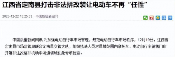 近日,江西定南县打击非法改装电动车集中整治行动,严查辖区内的电动车、摩托车销售门店,开展非法改装机动车流通领域乱象专项检查,从源头上杜绝非法改装电动车。