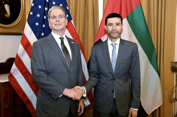 4月中旬,贝森特与阿联酋财政事务国务部长穆罕默德·本·哈会面。贝森特的X