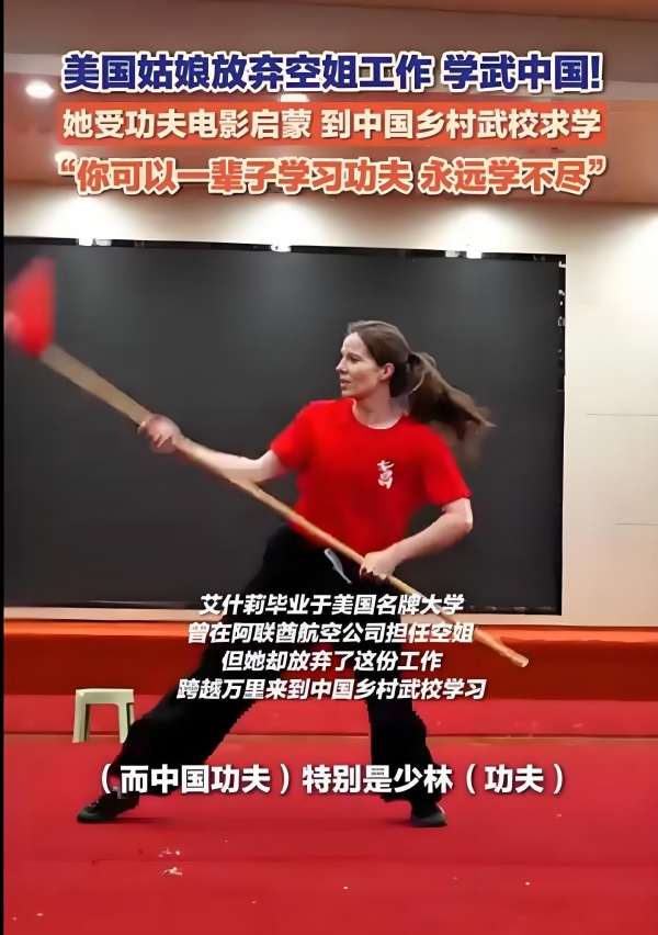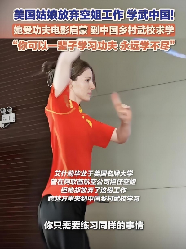 就在不少人还在为朝九晚五头疼时,有位美国姑娘却来了一场说干就干的大转弯。艾什莉,原本是阿联酋航空的空姐,光鲜亮丽、月薪据说能达到2万美元以上 ,全球各大都市随便飞。但她偏偏选择辞职,来到中国乡村,只为了追逐她那个从小埋下的功夫梦。
