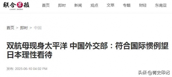 6月10日,咱们的双航母正在西太平洋搞训练呢,日本急着就跳出来"解释",中方淡定回应。