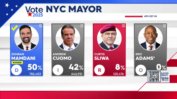 马姆达尼以绝对优势胜选纽约市市长,第二名是特朗普和马斯克背书的科莫