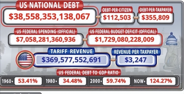 根据最新的数据显示,美国财政部的国家债务,已经超过了38.5万亿美元,按照这样的速度增长下去,预计在2026年10月份之前,美国的债务规模将会达到40万亿美元。