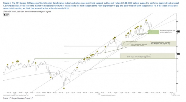随着AI等领导板块承压,市场出现了资金轮动的迹象。标普500等权重指数近期的优异表现便是一个例证。不过,该指数也显示出上涨乏力的迹象,其关键形态支撑位在7500点区域。