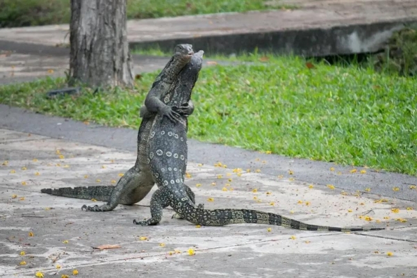 圆鼻巨蜥生性好斗,战斗欲望极强,尤其是在繁殖期的时候,更是会化身"杀戮机器",将四周的所有动物全部消灭,有时还会潜入周围村落,攻击村民的家禽、家畜,甚至人类。