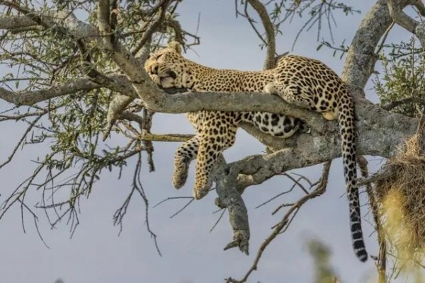 花豹体形似虎,身体健壮、四肢修长,全身满布黑色环斑,颇似古代的铜钱,它们的体长可达1.5米,体重可达200斤,性格凶猛、残暴,是捕食能力最强的猫科动物。