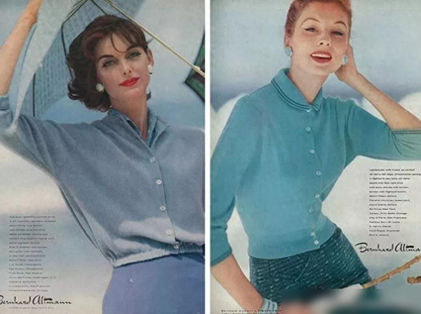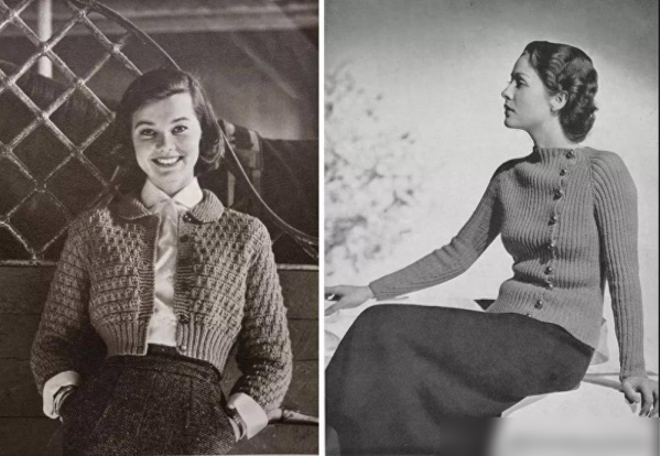这种改良之后的新型大毛衣就是我们现在所说的开衫,因此还是可以当作外套来穿,可以对襟,可以圆领,也可以长款也可以短款,而如今我们说的"奶奶开衫"实际上就是指短款对襟针织开衫。