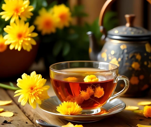 第二样不能空的是酒杯。重阳节又称"老人节",敬老爱老是这一天的核心主题。古人有饮菊花酒的习俗,菊花清热润燥,酒香醇厚,象征"久久"安康。一杯菊花酒下肚,暖身更暖心。若不善饮酒,一杯清香四溢的菊花茶同样应景。无论是酒是茶,杯中盛满的都是对长辈的敬意与祝福。