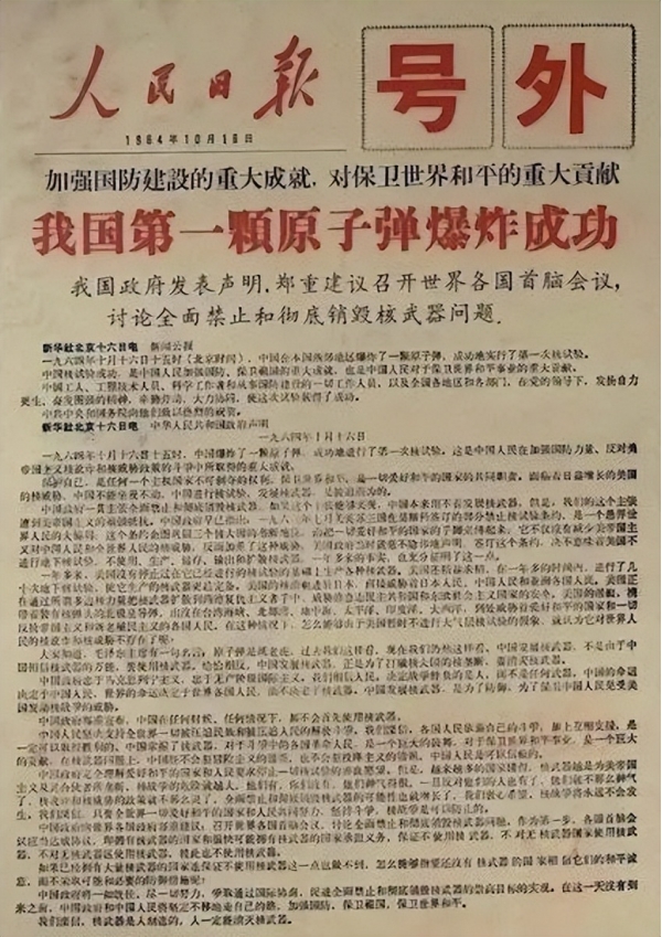 最后,也是最重要的一点,中国在1964年10月16日成功研制出了自己的原子弹并爆炸成功。