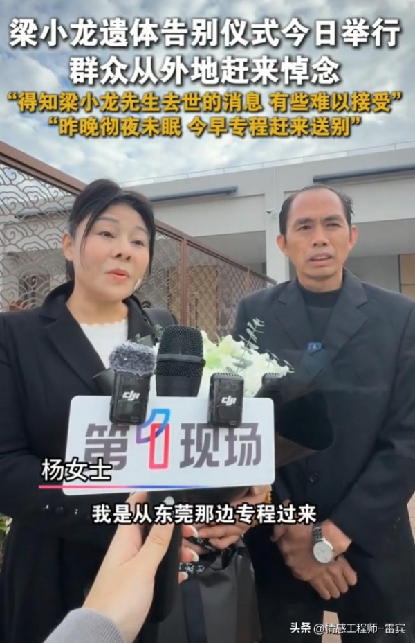 杨女士也是专程从外地赶过来,表示梁小龙离世的消息令人难以接受。在告别仪式的前一晚,梁女士彻夜未眠,一大早就专门赶来送别。