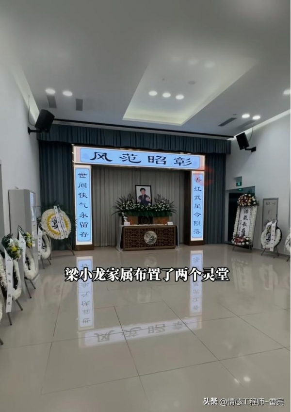 值得一说的是,这次梁小龙的告别仪式是非常讲究的,家属也考虑得非常周全。一来她们想要静静的悼念梁小龙,另一方面考虑到梁小龙的江湖朋友和粉丝也不少。于是设立了两个灵堂,一个给家属悼念,一个给粉丝悼念。