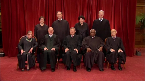 "三权分立"中的司法权,也会受到总统的个人意志影响。依据美国宪法第二条规定,最高法院共九位终身制大法官,由总统提名,经参议院通过任命。最高法院的9位大法官中,有6位被媒体评价为亲共和党的保守派,其中3位更是特朗普在首个任期内亲自任命,外界认为这会令特朗普在解决司法问题时更得心应手。