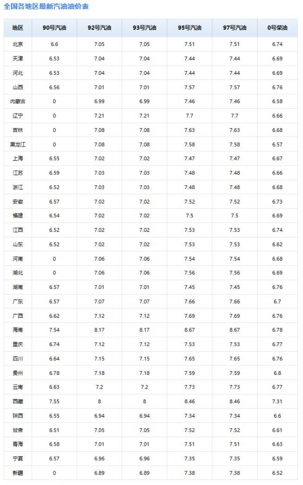 附:全国各省市加油站92,95号汽油以及0号柴油价格(仅供参考)