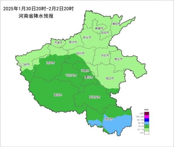 预计本轮降水过程累计降水量:中南部10-20mm,南部,东南部局部20-30mm,其他县市3-10mm。累计降雪量:北部,中部1-5mm(小到中雪),西部,西南部5-10mm(大到暴雪),西南部局部10-20mm(大暴雪)。新增积雪深度北部2到5厘米,中西部5到10厘米,其中南阳盆地北部和东部山区10到15厘米。受冷空气影响,30日至31日,全省大部偏北风4级左右,阵风6到7级。
