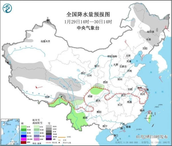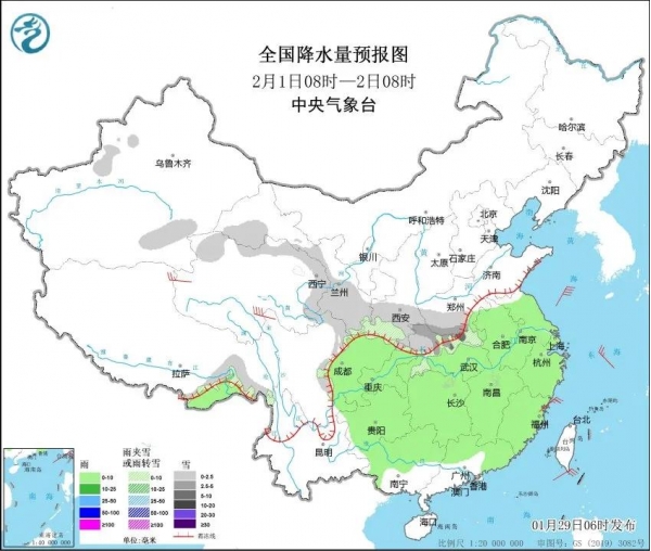 今天是1月29日星期三,农历正月初一,欢迎大家来关注天气变化。前几日,我省迎来了今冬以来范围最大,强度最强的一轮雨雪天气过程,我省全省普遍出现小到中雨雪,西部地区出现大范围暴雪-大暴雪,积雪深度一度达到10-20厘米,而南部出现一月罕见的大雨甚至暴雨天气,部分地区单日降雨量突破历史极值,是有气象记录以来最早的暴雨。