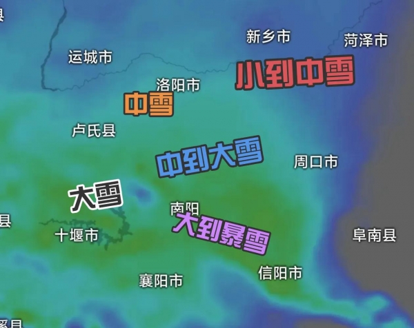 后天中午到下午,北部,东部也将加入降雪行列,上述地区有小雪或阵雪,与此同时黄河以南大部分地区有小到中雪,南部,东南部随着气温下降将迅速转雪,有雨夹雪转中到大雪。