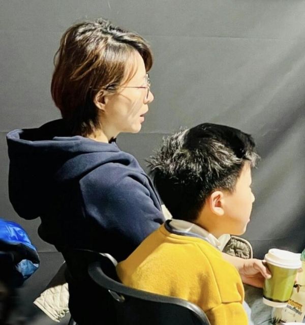 离开央视后,2024年董卿被拍到带着10岁儿子看展,此时她又换了一副窄框眼镜。