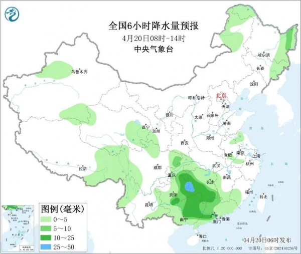 再看南方,这边的天气同样不平静。中央气象台今天早晨继续发布了暴雨蓝色预警,贵州东部、湖南、江西中西部、湖北东南部、广西中北部、广东西北部以及西藏东南部等地,今天普遍有大到暴雨,其中湖南南部和东部、广西北部局地更是大暴雨,降雨量可能达到100到150毫米。