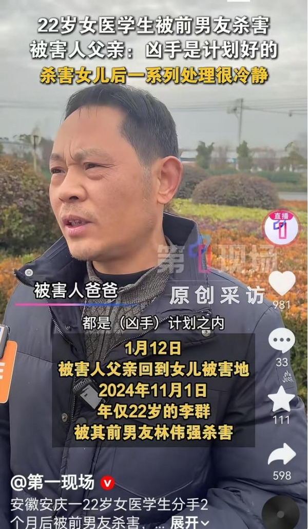 2024 年 11 月 1 日晚上,安徽安庆的寒风裹着冷雨,22 岁的女医学生李群揣着考研报名回执,准备去高铁站接北京来的男友。出发前,她给妈妈发了条微信:"妈,我先去跟林伟强把网店的事了断,接完男友就回家。"