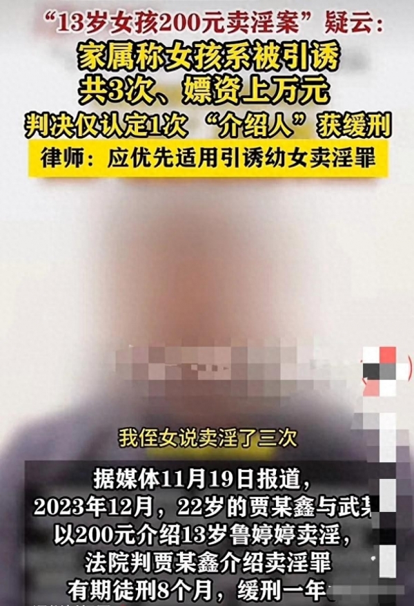 然而,比案件本身更让人愤懑的,是后续的司法处理结果。法院以"介绍卖淫罪"判处贾某8个月有期徒刑、缓刑1年,仅处罚金5000元、没收违法所得200元。这一判决,与鲁某所掌握的案件事实严重不符:报警时从未提及婷婷在KTV"上班",婷婷的笔录中也明确表示自己被胁迫卖淫3次,涉案金额超过万元,而非判决书所认定的1次、200元。更离谱的是,鲁某得知判决时已过上诉期,申请再审又被法院以"无被害人、养父无权利"为由驳回。一句"危害社会秩序而非伤害个人",不仅是对司法精神的曲解,更是对未成年受害者的二次伤害。