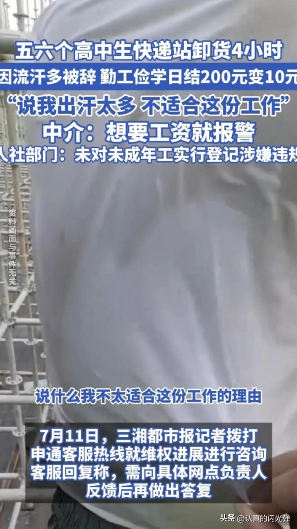 7月10日湖南长沙,正在上高二的胡同学想着暑假挣点钱,通过中介报名去申通快递分拣包裹。