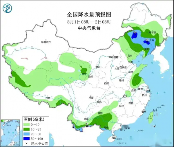 8月将迎来"开门雨",西南季风和东北冷涡将带来新一轮强降雨,特别是在8月1号到8月2号会有暴雨和大暴雨,主要影响西南地区和东北地区。