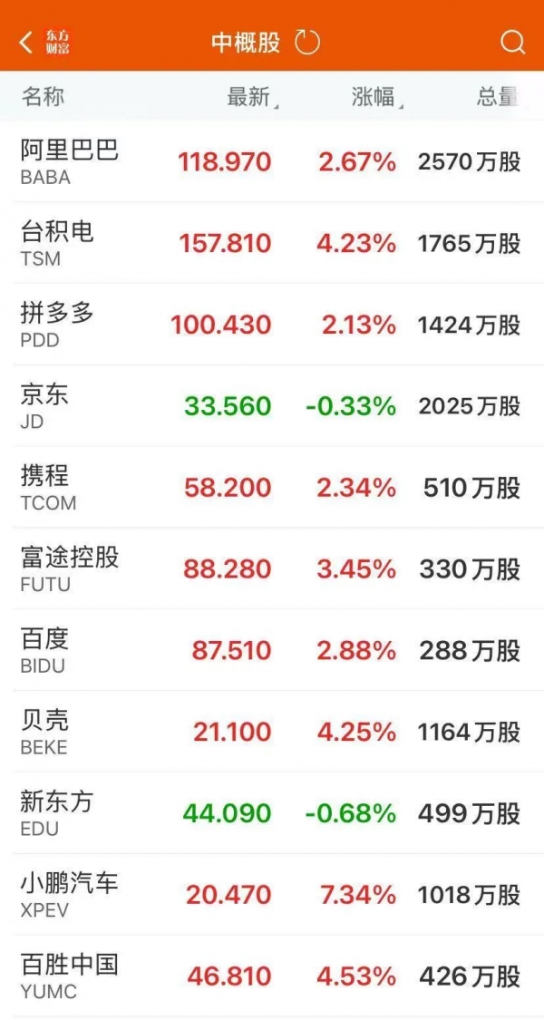 中国资产爆发,热门中概股表现强势,纳斯达克中国金龙指数收涨2.93%。小鹏汽车涨逾7%,蔚来涨近5%,向上融科、富途控股、哔哩哔哩涨逾3%,阿里巴巴、拼多多、百度涨超2%。