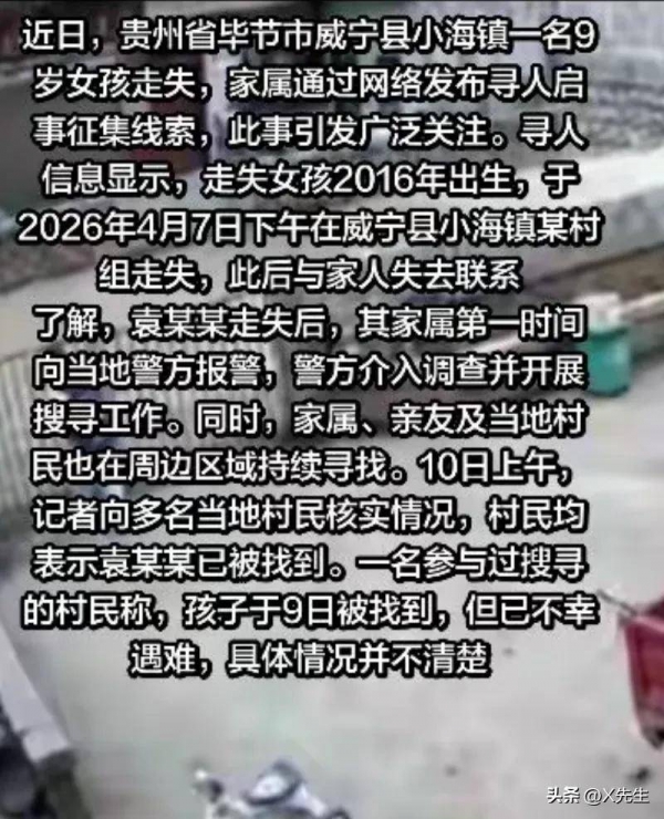 这次失踪的是贵州9岁女孩袁某某