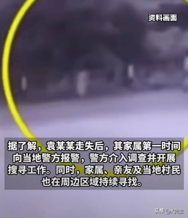 袁某某最后一出露面,是监控拍到她在村子里独自行走的画面,之后便失去了联系……