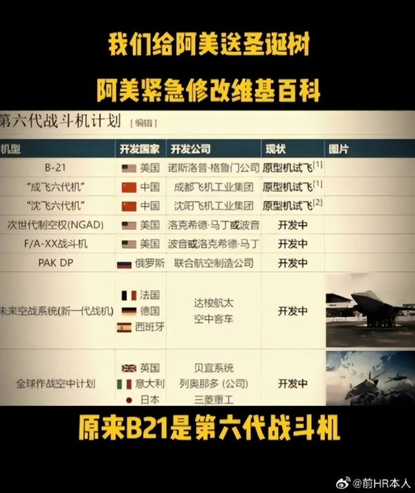 中国六代机曝光后,这可把美国五角大楼里的老爷们忙坏了。也不知道究竟是哪个"大聪明"想的点子:咱没有六代机,那就把维基百科词条改一改不就有了!