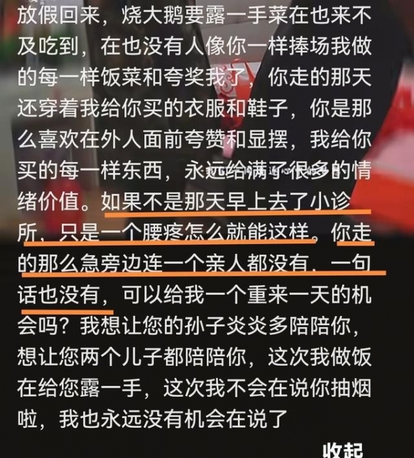 11月20日,儿媳发文,说"恍如隔世"。这四个字不夸张。昨天还在,今天就没了,人间最难的就是这个断裂。