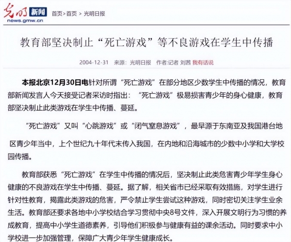 众所周知人类脑部如果缺氧4-6分钟就会造成不可逆的脑损伤,显然这个所谓的"梦回大唐"游戏对青少年的危害极大,一旦有参与者发生晕厥不能及时得到抢救,那后果简直是不堪设想。其实类似的这种死亡游戏早在2004年就得到了教育部的重点关注并明令禁止,该游戏为何能死灰复燃值得所有家长以及教育工作人员警惕,当然如果大家在大街上发现有类似情况一定要予以制止。