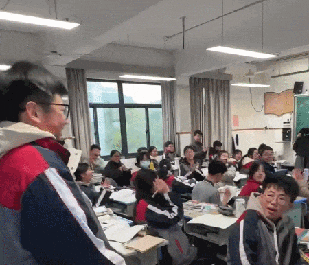 "扶灯"后,同学们齐齐地为潘奕辰鼓掌