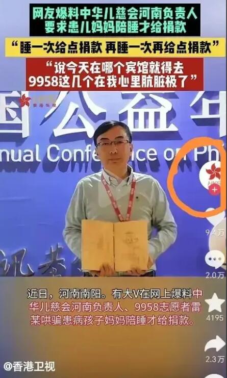 另一个是处罚太轻,2023年,儿慈会河北廊坊站的柯某孝以慈善名义,诈骗千万元。柯某和儿慈会副秘书长王某被逮了,但至今没有下文。儿慈会也就罚酒三杯,停业三个月,之后该干嘛就干嘛,所以,今年又出了要求陪睡的事件。