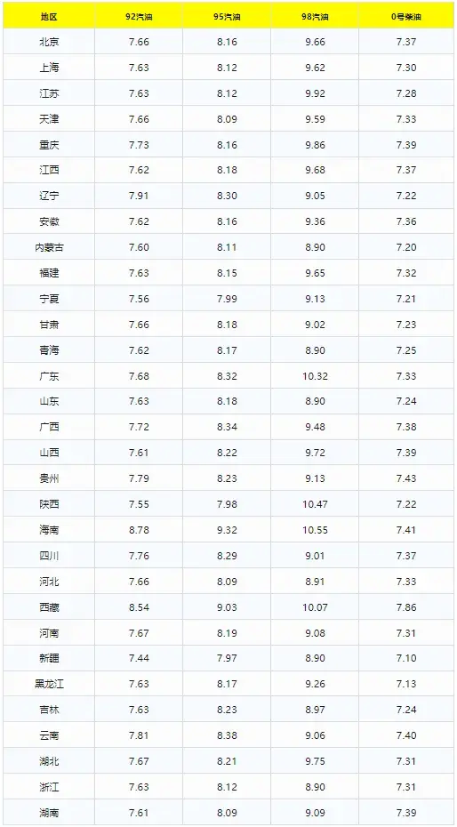 今日油价(9月12日)92,95,98汽油与0号柴油请看下方油价列表