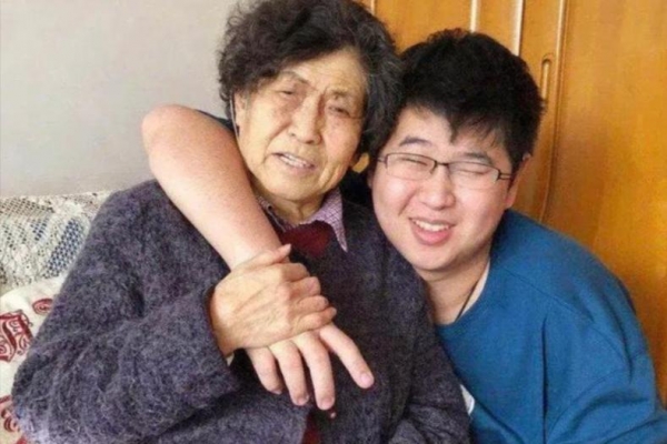 倪萍在国内拼命赚钱,虎子则由倪萍86岁的妈妈在美国照顾。