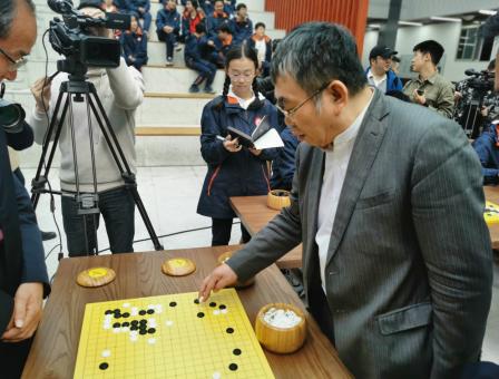 2023年4月,聂卫平与校园围棋爱好者过招。图片来源:重庆一中