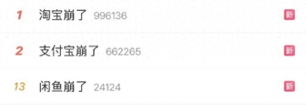 4日晚,"淘宝崩了、支付宝崩了、闲鱼崩了"相关话题冲上热搜。