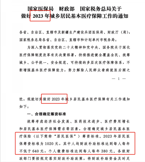 再从另外一个角度说,每年医保局、财政部等多个部门,发布的城乡居民基本医疗保障工作通知中,年份都是按照当年的年份发布的。