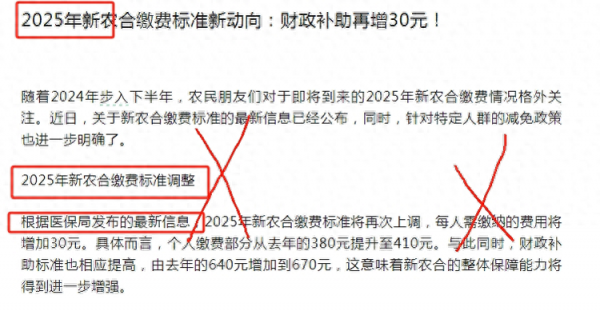 所以,从这个观点来来分析,文章开头所提到的2025年新农合缴费标准提升到410元/人的消息,也是谣言。