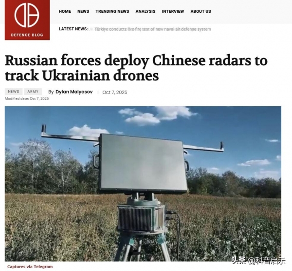 10月7日,乌克兰"Defence-Express"网发文称,乌克兰军队情报部门在相关军事行动中发现,俄罗斯野战防空部队所装备的装备中,竟包含部分来自中国的小型无人机探测雷达。随后,美国"Defence-Blog"网也跟进报道,这似乎让乌方说法有了"美国背书"的意味。乌军高层对此高度关注,觉得这可能是"中国军援俄罗斯"的证据。